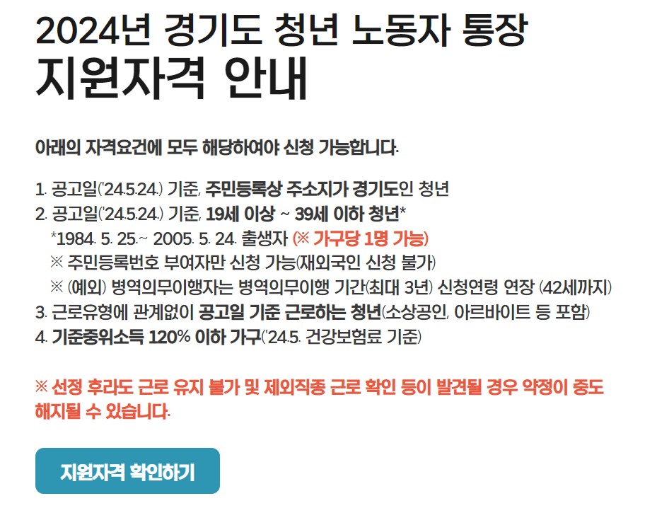 ※ 경기도 청년 노동자 통장의 신청대상자는