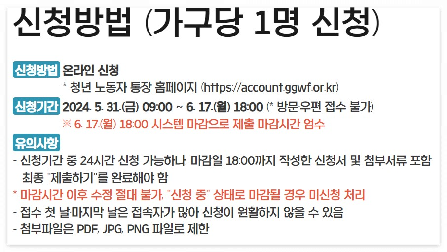 경기도 청년 노동자 통장의 신청 시 유의사항을 주의해서 보아주세요.