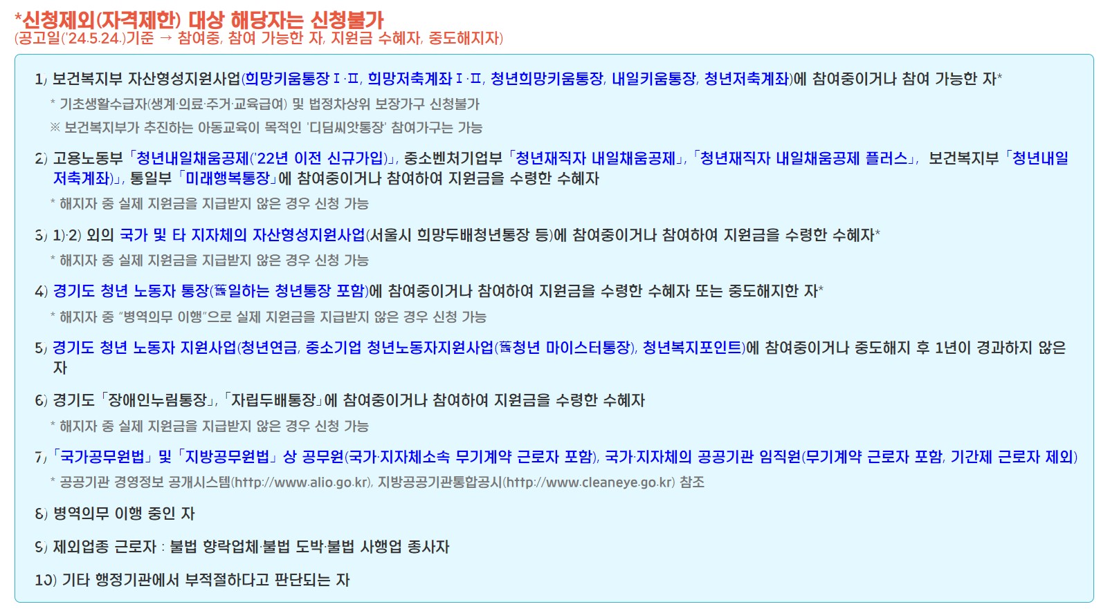먼저 내가 대상 자격이 되는지/ 자격 제한 대상은 아닌지 확인합니다.