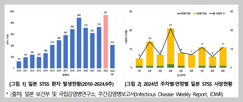 ∫ 질병관리청은 일본 STSS 감염 확산과 관련하여 국내외 발생동향을 면밀히 모니터링 중이라고 밝혔습니다.