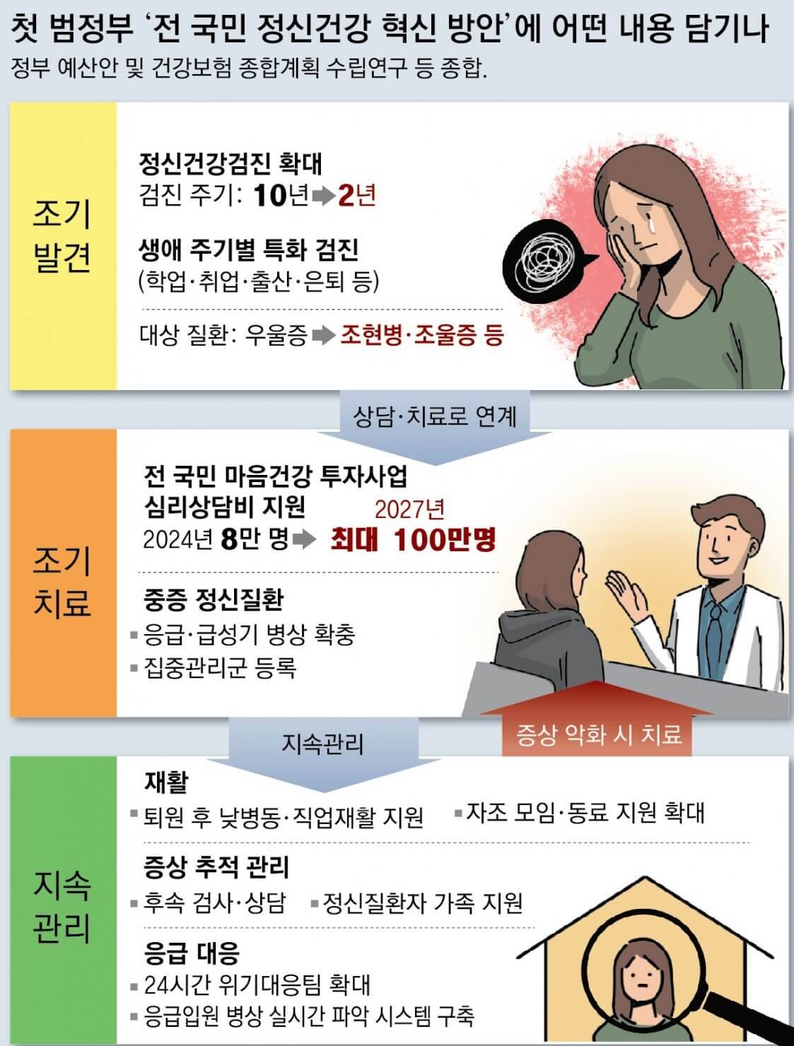 우울, 불안 등 정신적 문제로 어려움을 겪는 청년들에게 마음건강상담 지원 확대, 청년 정신건강검진 확대 등을 통해