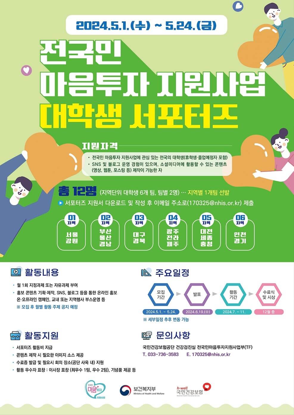 2024년 「전국민 마음투자 지원사업」 대학생 서포터즈 모집 | 국민건강보험