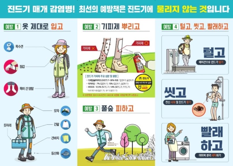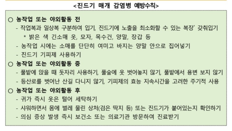 무엇보다 진드기에 물리지 않도록 주의하는 것이 최선의 예방법입니다.