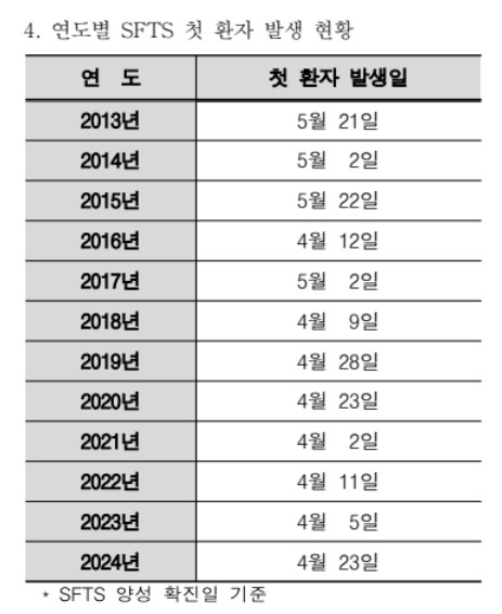 1. 올해 첫 중증열성혈소판감소증후군(SFTS) 사망자 발생