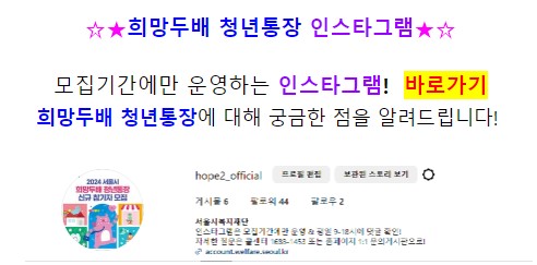 서울시 희망두배 청년통장의 신청기간은 2024년 6월 10일부터 6월 21일까지입니다.