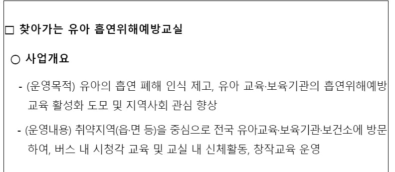 유아흡연위해예방사업 소개