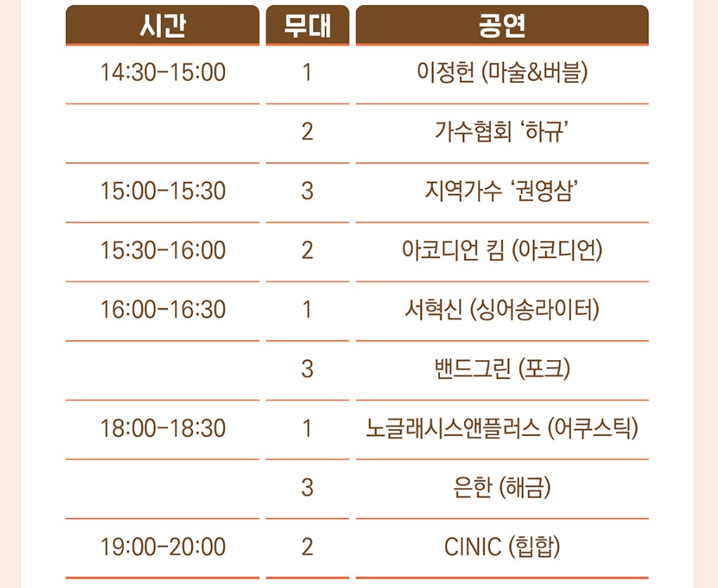 [메인무대]와 [버스킹]으로 나누어 진행됩니다.